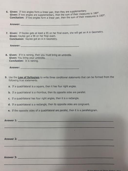 Use the Law of Syllogism Transitive Property and the Law of Detachment to determine the logical conclusion for each of the following. This fun four-page worksheet guides students to discover and practice the Laws of Deductive Reasoning. 1 If you run every day then you will not be a couch potato.