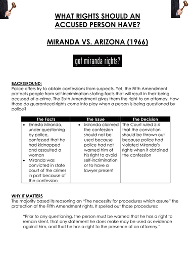 Miranda v arizona worksheet answers.