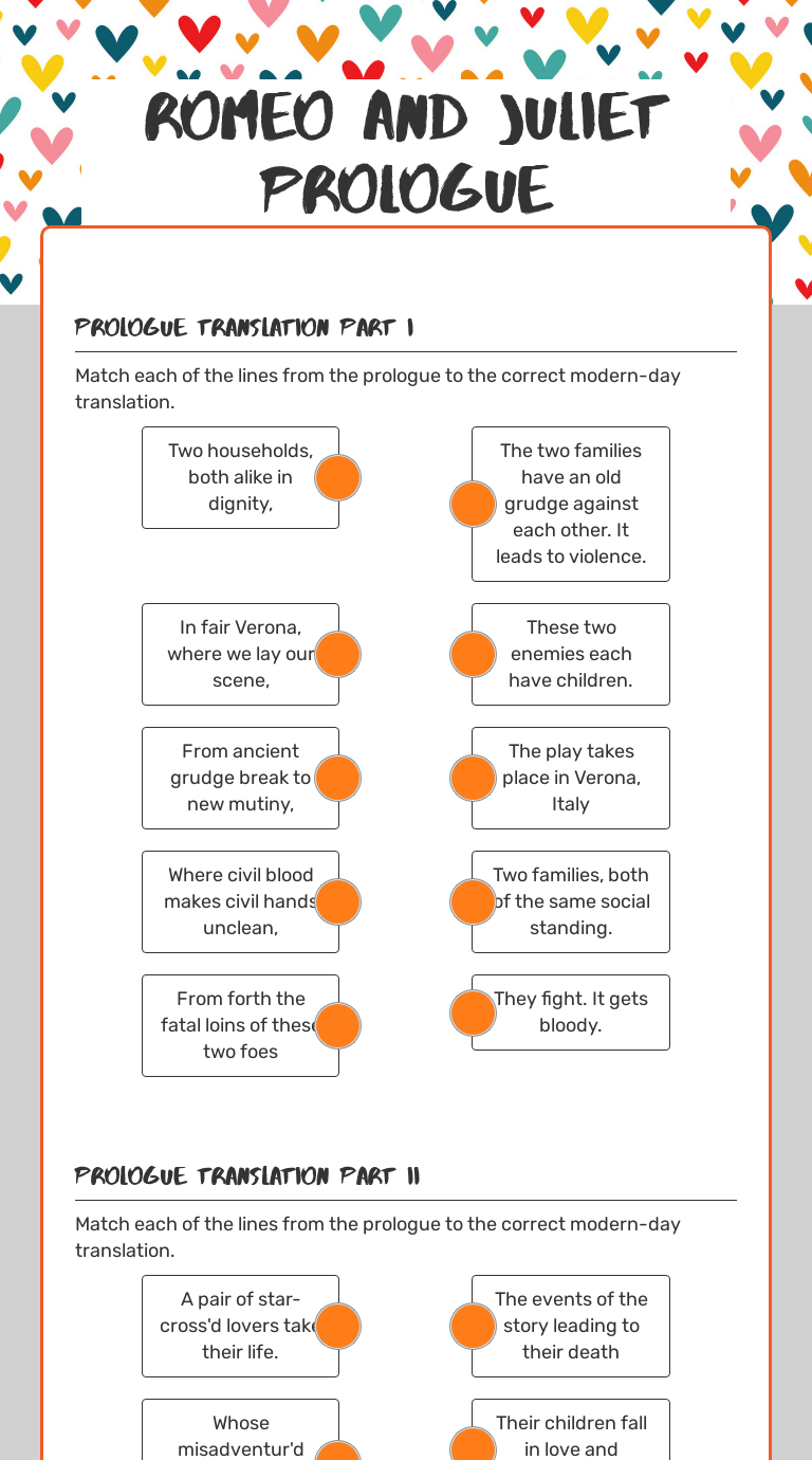 A collection of downloadable worksheets, exercises and activities to teach Romeo and Juliet, shared by English language teachers. Welcome to ESL Printables , the website where English Language teachers exchange resources: worksheets, lesson plans, activities, etc.