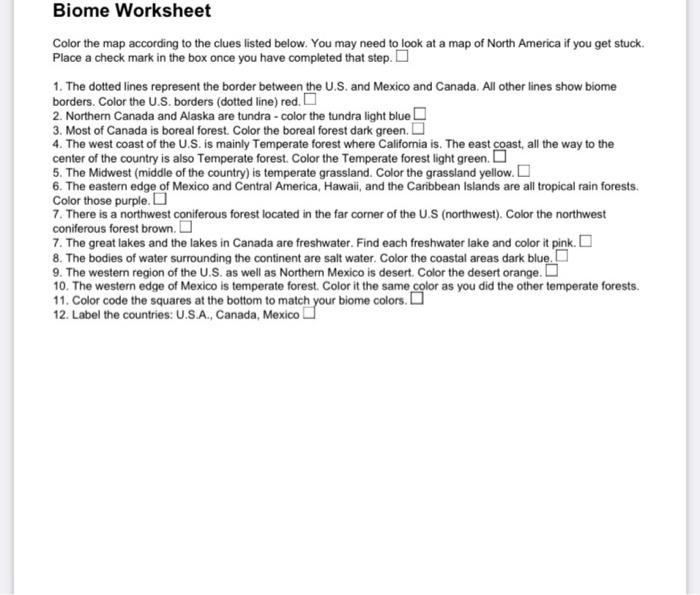 Color The North American Biomes Answers | GBGYABA Practice ... Color the north american biomes worksheet answer key Figure 1. Color the north american biomes answers. Color the squares at the bottom to match your biome colors. Color it the same as you did the other temperate deciduous forests light green. Color the North American Biomes Color the map according to the clues listed below.
