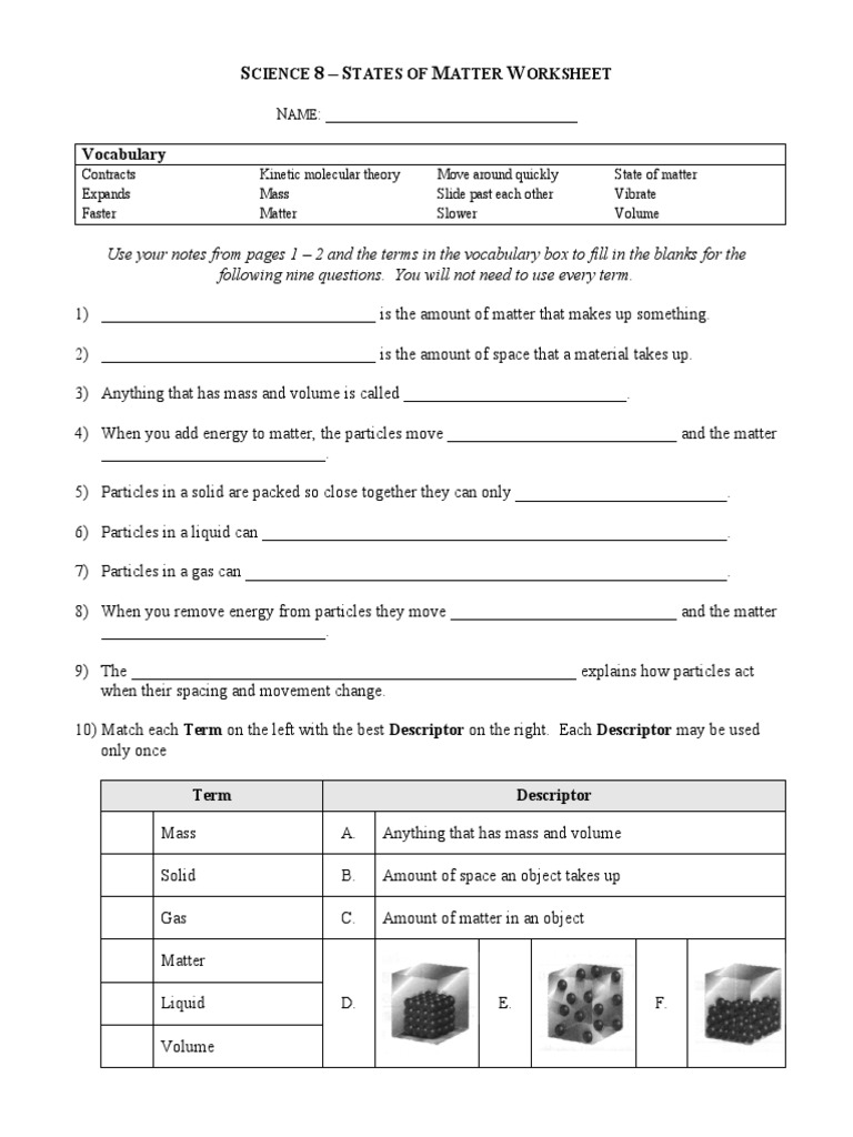 Science 8 states of matter worksheet
