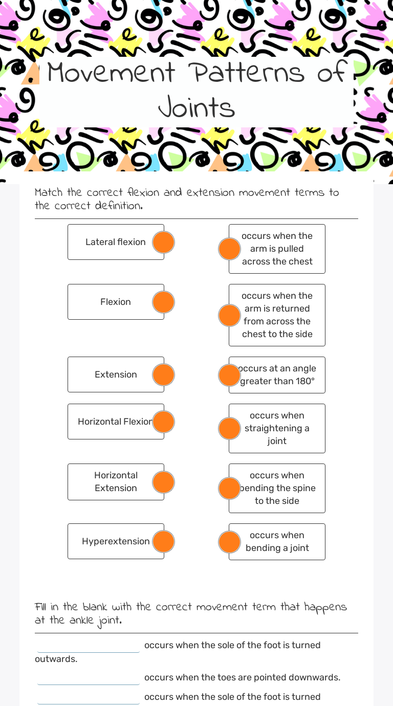 Joints & movement worksheet