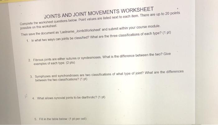Joints And Movement Worksheet - [100] images - types of joints in... Tln Course, Joints Worksheet, Joints And Movement Worksheet Movement Anatomy Educational Worksheets, Name Joints Movement Worksheet Read Your Notes And Chegg, Synovial Joints...