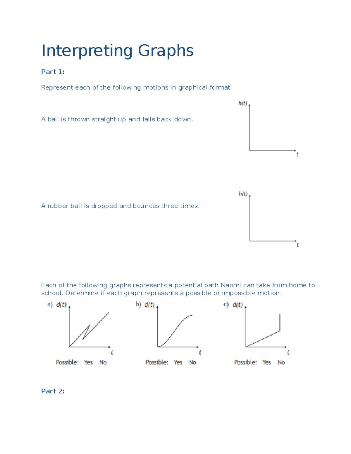 Worksheet interpreting graphs chapter 4 linear motion answers. Interpreting Motion Graphs Worksheet Answers ... On this page you can read or download worksheet interpreting graphs chapter 4 linear motion graph 2 answers in pdf format. Time graph indicate about an object s motion. Interpreting motion graphs ap inquiry physics answer questions 1 and 2 in complete sentences 1. PDF Holman Math Class / Interpreting Graphs Answer Key CHAPTER 4: LINEAR MOTION INTERPRETING GRAPHS- As I have said many times in class, "a picture is worth a thou- sand words". In physics, a graph is "worth a thousand numbers". A great deal of information can be obtained by looking and interpret- ing graphs describing motion (displacement, speed, velocity, and acceleration). Distance vs. Time Graphs- To the right is a softmath.com › linear-equations-withLinear equations with fractions calculator - softmath Linear "partial differential equation" nonhomogeneous, grade 4 subtraction and addition test, Practice Workbook - Prentice Hall Mathematics: Algebra 1 answers, simplify expressions with exponents, vectors worksheet - gcse maths, ti-84 plus emulator, number relation problems examples. Interpreting Graphs Of Accelerated Motion Worksheet 4 Answers Interpreting graphs of accelerated motion worksheet 4 answers. The bicycle trip through hilly country. How far does the car travel during section b. In which section is the car s acceleration negative. Describing motion with graphs involves representing how a quantity such as the object s position can change with respect to the time.