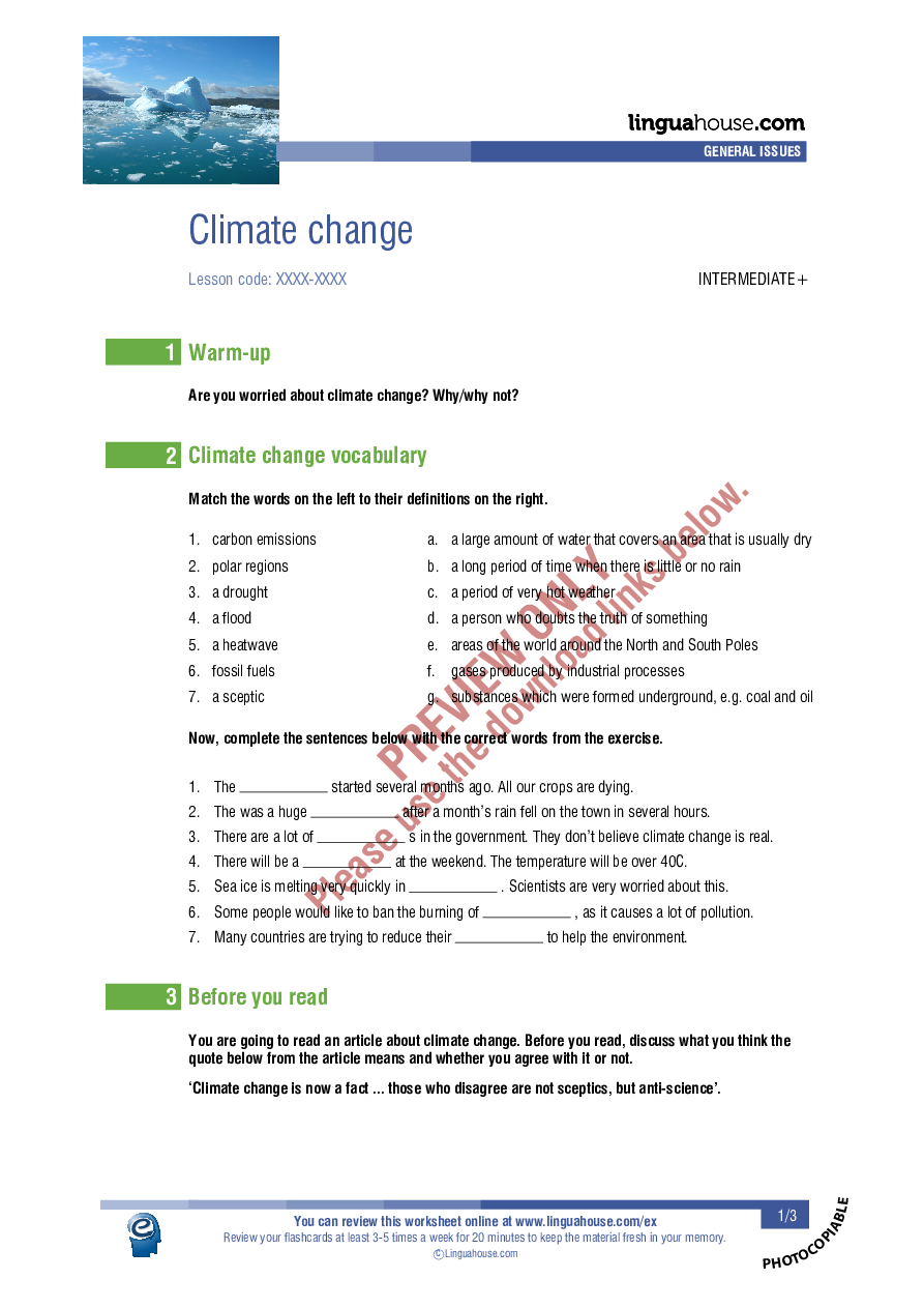 Let's Talk about CLIMATE CHANGE worksheet - iSLCollective.com - Free ESL worksheets | Teens ESL ...