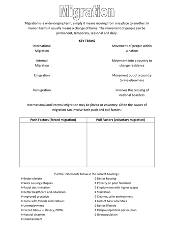 Human Population Growth Graphing Activity Human Population Growth and Carrying Capacity Step 1-Create Human Population Growth Graph Directions: Use the following data to graph the human population starting in the year 1650. Scale the x-axis from years 1650 through 2050, and the y-axis from 0 to 8 billion people. Make sure that you 1) label your axis, 2) scale the axes so that it uses most Human migration - Wikipedia Human migration is the movement of people from one place to another with ... compared to the South (25 million), the South recorded a higher growth rate. Between 2000 and 2013, the average annual rate of change of the migrant population in developing regions (2.3%) slightly exceeded that of the developed regions (2.1%)." Substantial internal migration can also take … Population Lessons, Worksheets and Activities The world's population is estimated by the United States Census Bureau to be 7.513 billion. In the future, the world's population is expected to peak, after which it will decline due to economic reasons, health concerns, land exhaustion and environmental hazards. Quiz & Worksheet - Human Population Growth and Carrying ... This quiz/worksheet will help test your understanding of the periods of human population growth. Other topics you will be quizzed on include the definition of demography and estimations for...