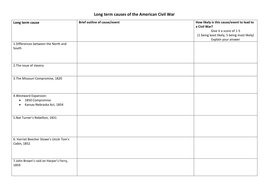 Causes of the civil war worksheet