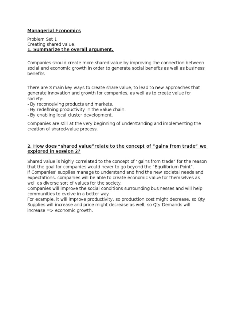 Problem Set 1 Answers Created Shared Value & Inelastic Supply Curve | Economic Equilibrium ...