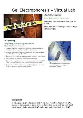 Gel Electrophoresis Lab Teaching Resources | Teachers Pay Teachers This product is a student handout I have created based on an existing virtual lab on gel electrophoresis. In this lab students will model the procedure of setting up the gel, loading the DNA samples, assembling the gel apparatus, hooking up the electric current, and finally analyzing the results.