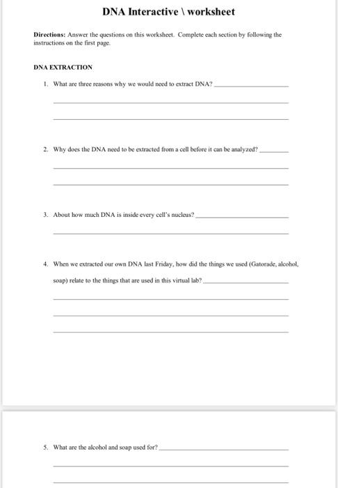 Biotechnology Web Lesson - The Biology Corner Go to the tab for "Virtual Labs" at Genetic Science Learning Center. You will be doing the DNA extraction and the Gel Electrophoresis. Complete this worksheet as you walk through the steps of the labs. DNA Extraction 1. List three reasons for extracting DNA from a human subject: 1) ________________________________________________________