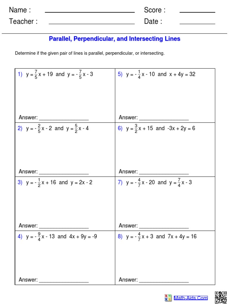Parallel and perpendicular lines worksheet answers
