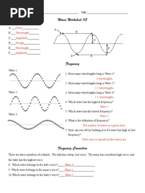 Waves worksheet answer key. Waves Gizmo Worksheet Answer Key Pdf Free - myilibrary.org Waves Gizmo Worksheet Answer Key Pdf Free | checked. 4199 kb/s. 5559. Student Exploration- Waves (ANSWER KEY). - Calaméo. Gizmo Warm-Up Ocean swells are an example of waves . In the Waves Gizmo TM , you will observe wave motion on a model of a spring. Waves - Physics Waves - Physics Waves This topic will discuss waves in the physical sense. This is the second to last unit that we will be covering. We will have three different note packets for waves and various wave phenomena. The formulas and electromagnetic spectrum that deals with waves can be found in your reference table. Note Packet 1 Waves PowerPoint 1 Waves Review Worksheet Answer Key - Edu Stiemars In this standing waves activity, students reply 9 questions about graphs of assorted waves. They establish standing waves and their nodes, anti-nodes, wavelengths, amplitude, frequency and number of cycles. 4) Give some examples of transverse and longitudinal waves. Sound in solids can be each longitudinal and transverse. PDF Waves #2 Worksheet Answers - Paulding County School District Amplitude Wave 4: Wave 5: Wave 6: Amplitude Connection Juan is playing the piano. The music starts of at meso-forte (medium high volume). It then crescendos into forte (loud) and Juan plays dramatically. The music ends at piano (quietly) with a sweet melody. 6. Which wave represents the music at the beginning?_____Wave 6_____