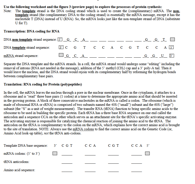 Worksheet 7 DNA transcription and translation Answers 2020 Answers to transcription and translation worksheet bio152 cell biology worksheet gene and dna transcription and translation questions caa acg gag gag ctt ...