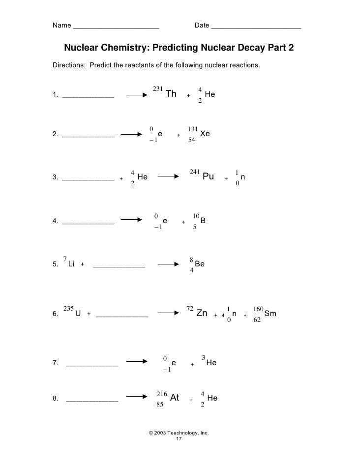 Chapter 25 nuclear chemistry worksheet answers
