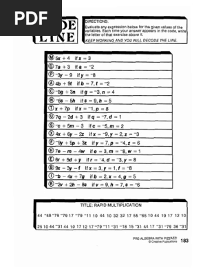 Pre algebra with pizzazz answers pdf - Canada examples Working ... This section provides answers for all the worksheets contained in that particular workbook. From Algebra With Pizzazz Worksheet Answers to slope, we have got all kinds of things covered. Come to Factoring-polynomials.com and uncover a line, lines and lots of additional algebra … Do any exercise below and find your answer in the code. softmath.com › algebra-with-bracketsAlgebra with brackets calculator - softmath How do divide powers in algebra, holt algebra 1 workbook answers, maths stats past paper download, pre-algebra with pizzazz! book aa, how 2 solve linear equation with 3 unknowns. Free sequence solver, answers to 1-5 algebra one homework, T-83 GRAPHING CALCULATOR TUORIAL, ti 84 solver download. Free algebra calculator with steps - softmath pizzazz pre algebra worksheets ; writing fractions in expanded form ; java, sum number ; graphing linear equations worksheet ; mathematic books form1 ; math solver steps ; how to solve least common denominator ; base numbers explained for fifth graders ; methods of solving 2 multiple variable equations ; california biology workbook answers ; why do you have to simplify … this puzzle will make you a star! - Paulding Solve the equations at the right and find the solutions below. Connect the dots in the order of the numbered equations. You.