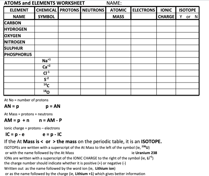 Atoms isotopes and ions worksheet answers. Atomic number - Wikipedia The atomic number or nuclear charge number (symbol Z) of a chemical element is the charge number of an atomic nucleus.For ordinary nuclei, this is equal to the proton number (n p) or the number of protons found in the nucleus of every atom of that element. The atomic number can be used to uniquely identify ordinary chemical elements.In an ordinary uncharged atom, the … Science Content Standards - The National Academies Press D. does not tell students that the number of swings depends on the length of the pendulum, but creates an activity that awakens students' interest and encourages them to ask questions and seek answers. Ms. D. encourages students to look for applications of the science knowledge beyond the classroom. Students keep records of the science activities, and Ms. D. helps them … Achiever Papers - We help students improve their academic standing All our academic papers are written from scratch. All our clients are privileged to have all their academic papers written from scratch. These papers are also written according to your lecturer’s instructions and thus minimizing any chances of plagiarism. nap.nationalacademies.org › read › 4962Science Content Standards - The National Academies Press The atoms in some are heavier than the ones in others. Mr. B. realized how many different ways the students explained what they saw, for example, thickness and thinness, heaviness and lightness, more and less, different densities and atoms. The discussion gave him a sense for what the students were thinking.
