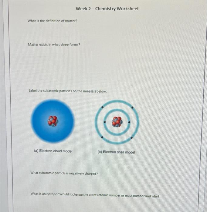 Chemistry a study of matter worksheet. Chemistry - Wikipedia WebChemistry is the scientific study of the properties and behavior of matter. It is a natural science that covers the elements that make up matter to the compounds composed of atoms, molecules and ions: their composition, structure, properties, behavior and the changes they undergo during a reaction with other substances.. In the scope of its … Early Ideas about Matter | Chemistry | Visionlearning Modern atomic theory An eighteenth-century chemistry bench. Priestley, Lavoisier, and others had laid the foundations of the field of chemistry. Their experiments showed that some substances could combine with others to form new materials, other substances could be broken apart to form simpler ones, and a few key "elements" could not be broken down any further. Chemistry: A Study of Matter | Georgia Public Broadcasting WebChemistry is the study of matter, its composition and the changes it undergoes. During this semester, you will be introduced to the scientific method used to study matter and will be given the mathematical tools you will need for the remainder of the course. You will learn how matter is classified according to its properties and composition ... Printable Chemistry Worksheets and Answer Keys, Study Guides … WebHigh School Chemistry Worksheets and Answer Keys, Study Guides and Vocabulary Sets. CHEMISTRY is the study of matter, its properties, how and why substances combine or separate to form other substances, and how substances interact with energy. The five main branches of chemistry include analytical chemistry, physical chemistry, organic …