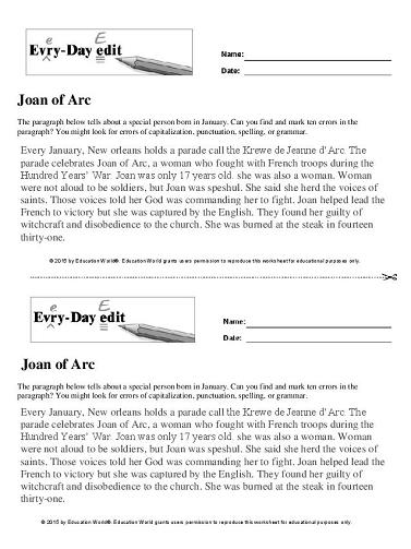 PDF Joan of Arc - Education World Education World grants users permission to reproduce this worksheet for educational purposes only. On a coool spring day in April off the year 1910, William Howard Taft become the ... parade celebrates Joan of Arc, a woman who fought with French troops during the Hundred Years' War. Joan was only 17 years old. she was also a woman. Woman
