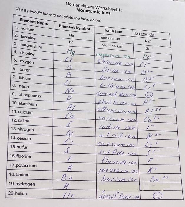 Achiever Papers - We help students improve their academic … 6-1 Scenario Activity: Is It Secure? Master's. Technology. 3. View this sample Term paper. Building a more Just Society. Undergrad. (yrs 3-4) Law. 5. View this sample Research paper. Comprehensive Strategic Plans. Undergrad. (yrs 3-4) Criminal Justice. 10. View this sample Research paper. Native American attempts at assimilation, revitalization, and resistance. … The first thing we need to do is figure out what kind of compound … Practice: Predict the charge on monatomic ions.Steps to use Ionic Equation Calculator:-. Follow the below steps to get output of Ionic Equation Calculator. Step 1: In the input field, enter the required values or functions. Step 2: For output, press the "Submit or Solve" button. Step 3: That's it Now your window will display the Final Output of your Input. More Online Free Calculator.The … Ionic Compounds Coloring Page Answer KeyNo numerical … 16 best images of nomenclature worksheet 2. Ions And Ionic Compounds Worksheet Answer Key — Db-excel. Ionic Compounds Worksheet Answer Key. All you need is smooth internet connection and a device to work on. Utilize the Sign Tool to add and create your. Naming Binary Ionic Compounds Answer Key. Ionic compound worksheet 1 answer key in my ...