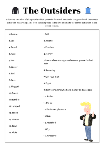The Outsiders Questions and Answers - eNotes.com On what page of The Outsiders is the following quote? "They grew up on the outside of society. They weren't looking for a fight. They were looking to belong." In The Outsiders, what does Johnny... min012.shop › the-outsiders-chapter-5-activitiesIn this Walk Two Moons comprehension check worksheet ... In this comprehension check worksheet, students respond to 12 short answer questions covering chapter 5 of The Outsiders by S.E. Hinton. 25 Views 58 Downloads.Self-grading Outsiders Chapter 10 Quiz: This is a 10 question reading quiz for Chapter 10 of S.E. Hinton's novel The Outsiders. The Outsiders Worksheets Answers - acscu.net Outsiders. Displaying top 8 worksheets found for - Outsiders. Some of the worksheets for this concept are The outsiders unit plan, The outsiders by hinton sequence strips, Sample prestwick houseactivity pack, T thhee oouuttssiiddeerrss, The outsiders chapter questions, Vocabulary study the outsiders by hinton teacher, The outsiders study guide ... prestoplans.com › 7-creative-activities-to-teach7 Creative Activities to Teach The Outsiders by S.E. Hinton In chapter 5 of The Outsiders, Ponyboy recites Robert Frost’s “Nothing Gold Can Stay,” and the poem is referenced again later on in the novel when Johnny Cade says to Ponyboy, “Stay gold.” After students have read chapters 5 and 6, I get them to complete an activity centered around Frost’s poem to prepare them for the impact of ...