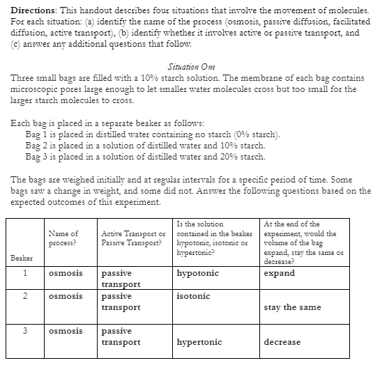Passive transport worksheet answers