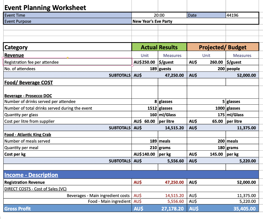 Event planning budget worksheet