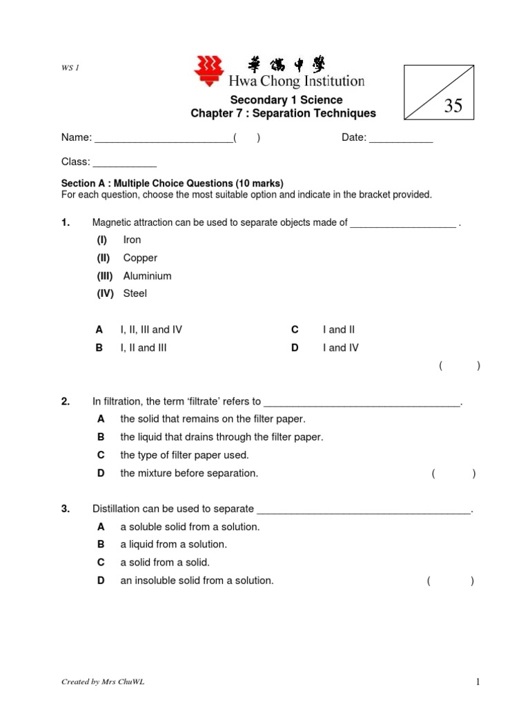 Separation techniques worksheet answers