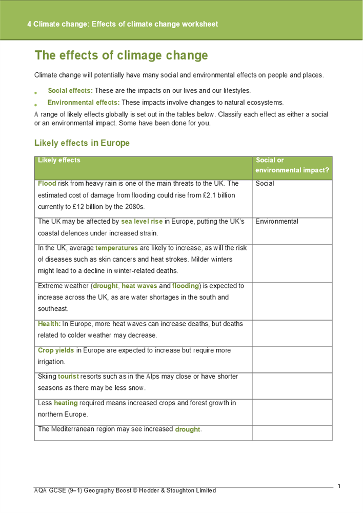 Climate and climate change worksheet. The Little Ice Age: Understanding Climate and Climate Change By comparing and contrasting time intervals when tree growth was at a minimum, solar activity was low, and major volcanic eruptions occurred, they draw conclusions about possible natural causes of climate change and identify factors that may indicate climate change. Click to View Notes from our reviewers For Educators - Climate Change: Vital Signs of the Planet This collection of climate change lessons and activities for grades K-12 is aligned with Next Generation Science and Common Core Math Standards and incorporates NASA missions and science along with current events and research. › NASA Wavelength Climate change resources for schools | WWF The science that affects our world The Earth's global temperature is warming, meaning that weather patterns and ecosystems are changing more quickly than animal species and human communities can adapt to. Our new introductory climate change resources have been designed to introduce the topic of climate change to students aged 7 -11. Climate change in geography | Tes Geography Science Tes Resources Team 13th May 2022 Lessons, activities and worksheets on climate and the environmental impact of climate change To help you explore the topic with your secondary Geography learners, we've hand-picked this engaging collection of climate and climate change lessons, worksheets and activities from the Tes community.