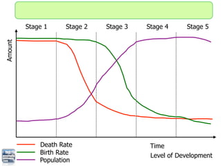 PDF IR-17: Demographic Transition Model - WORLD GEO Demographic Transition Stage 1 Stage 1 of the demographic transition model is known as the pre-agrarian period. Birth rates, the number of births per 1,000 people, and death rates, the number of deaths per 1,000 people, are relatively high. This stage is characterized by the number of deaths equaling the number of births, so there is no real ...
